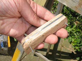 Next step will be to shape the handle and drill the holes for the steel rods that will keep everything together.