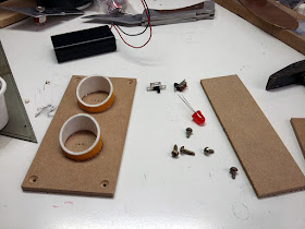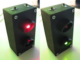 My cousin turned 8 years old and for his birthday he wanted something that could prevent his mom or anyone from entering his room without permission. Specifically, he wanted a stoplight. Naturally this appealed to my diy brain and I started working on it. I had no plan, I just wanted to make a wooden box with a red and green light, a batteryholder and a switch. Unfortunately I didn't have the right switch available so I had to mount separate switches for the red and green light. My cousin didn't bother with such technical details :)